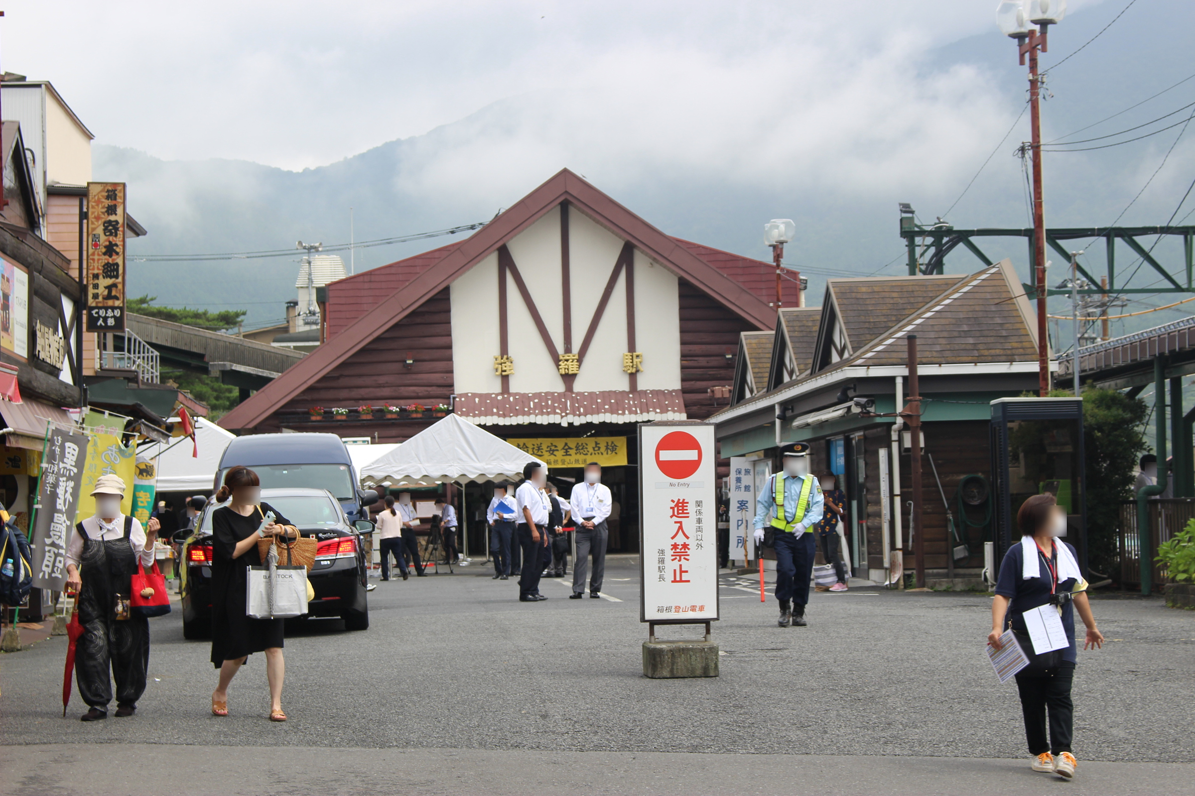 式典のためテントが貼られた強羅駅前。人は多くありませんが、喜びに満ちた良い空気でした。