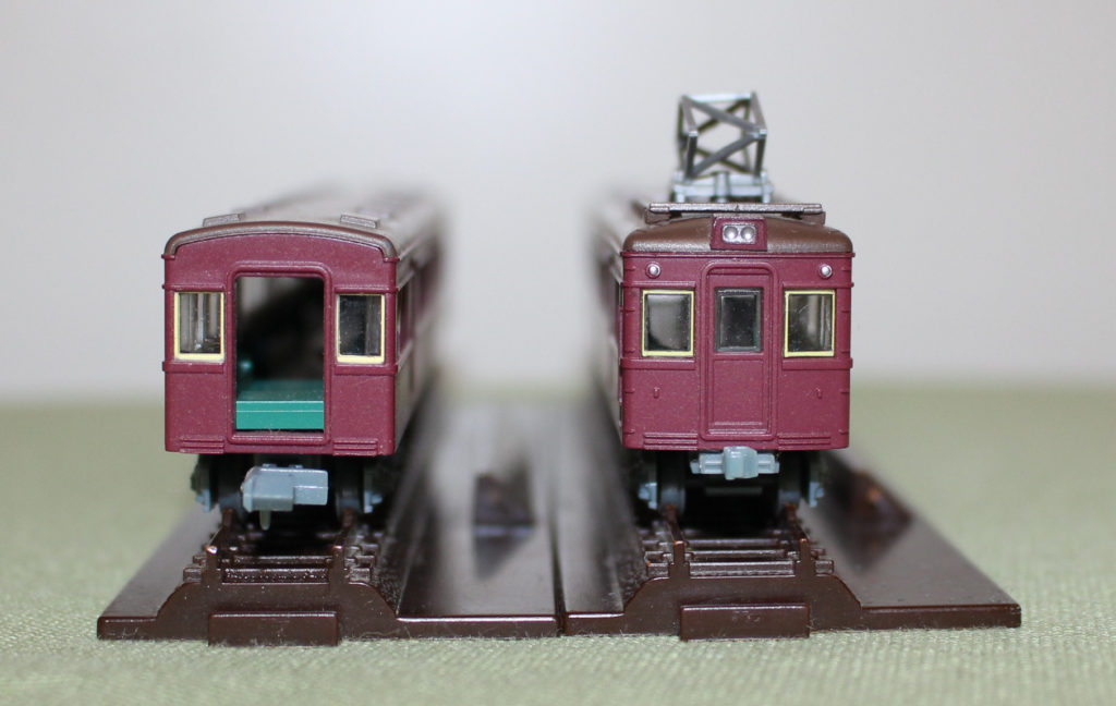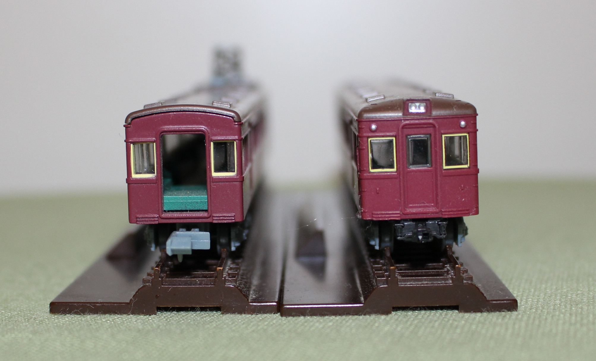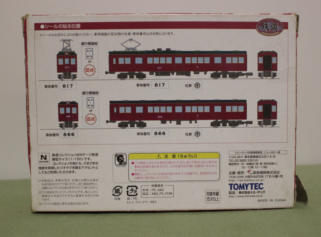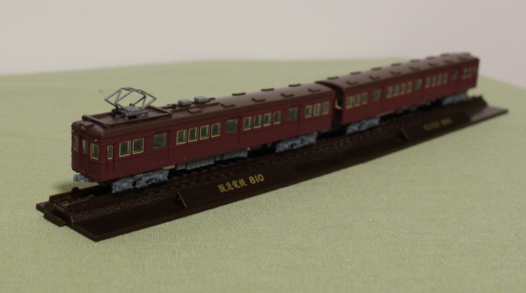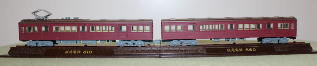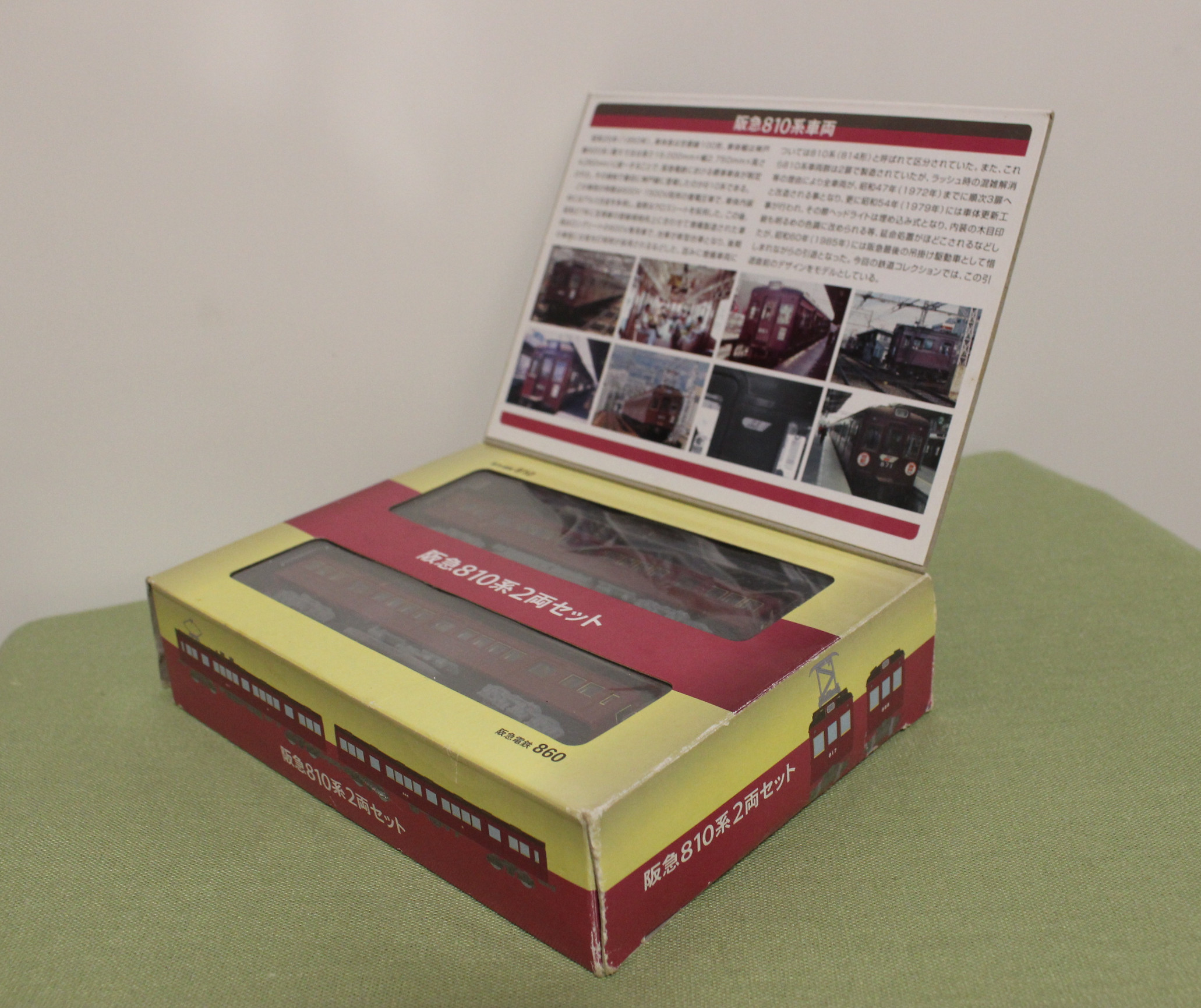 鉄道コレクション 阪急810系2両セットです。宝塚在住の知人から新品で譲り受けたものですが、我が家に来て10年ほど経つでしょうか。箱が痛んできています。私は阪急のことはさっぱりなので、写真でお楽しみください。